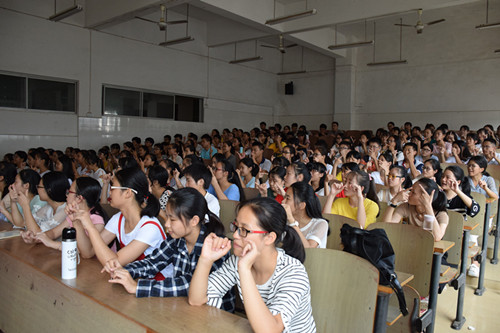 讲座伊始,张云峰书记向大家介绍了他在学校二十一年的工作经历,将其总结为三方面:一是陪伴衡阳师专发展为衡阳师院;二是陪伴了一届又一届的学生;三是自我身心的变化。紧接着张云峰书记和全体转段生玩了一个有趣的互动:开心手指操—幸福加减法,并赠送了自己亲笔题写的“天行健君子以自强不息”和“更上一层楼”的书法作品给两位学生,现场气氛十分活跃。