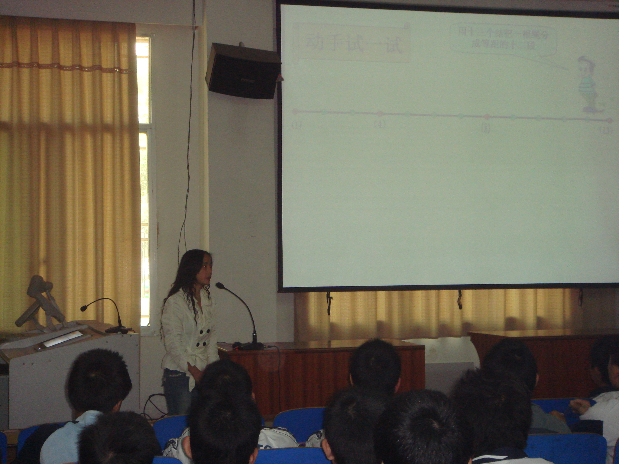 汇报课中,实习学生主要讲解了勾股定理的逆定理的概念及其推理过程,并抛砖引玉、举一反三,课堂拓展恰当,课堂气愤活跃,取得了良好的教学效果,得到了衡阳市第三中学领导和老师的充分肯定。同时,实习学生能娴熟的运用多媒体进行教学,掌握了现代技术的教学手段,为教学效果增添了光彩。