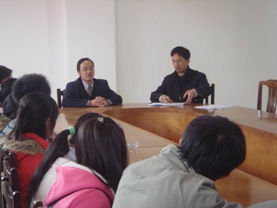 123中午1230,数学系周书记、杨主任、肖主任以及参加期中抽考的新生在数学楼302举行了数学系《数学分析》、《高等代数》期中抽考座谈会,部分学生干部参与了本次座谈会。座谈会由杨主任主持.