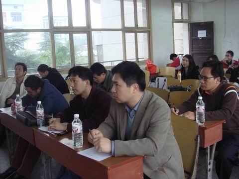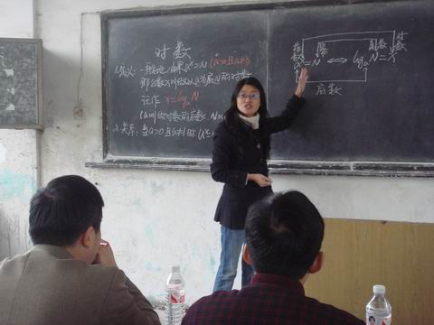 1122 上午8:00,在老校区综合楼206室,数学系开展2009届毕业生汇报课教学比武活动,全系推选14位毕业生参加了比武活动,本次比武活动的评委由数学系系主任罗李平教授、系党总支书记周炎林、系副主任杨柳、阳志锋、高正晖、周勇等老师组成。本次比武活动由数学系副主任杨柳主持。