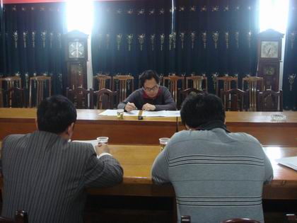 会议主要就衡阳联合基金申报的相关工作进行了讨论。我系罗李平教授申报的《基于脉冲控制的农作物害虫管理策略的数学模拟》项目是与衡阳市现代化农业示范园进行联合申报。会议现场,首先衡阳市现代化农业示范园参会的几位领导认真阅读了本项目申请书;接着,他们对本次合作项目提出了指导性建议;最后,我系罗李平教授与衡阳市现代化农业示范园签订了合作协议。