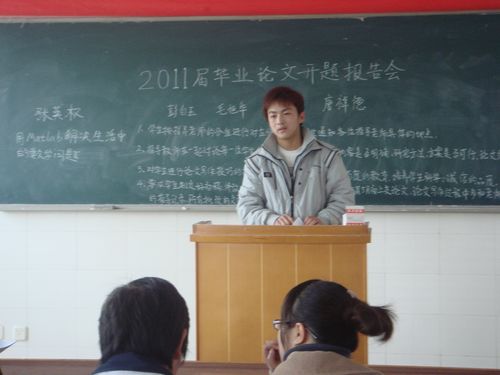 开题报告采取学生说、老师指导的形式进行,使指导老师充分了解了毕业生对于论文前期的准备情况,以及其所选研究方向的可行性。报告会共分八个小组,每个小组安排了四位指导教师对学生进行面对面的专题指导。 此次报告会为师生提供了一个交流平台,为毕业生顺利完成毕业论文的写作打下了基础。