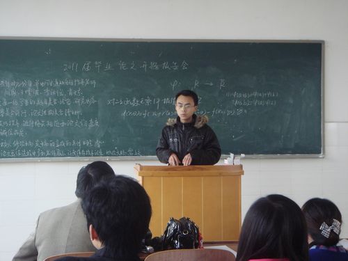 4 月3日上午,数学与计算科学系2007级毕业生毕业论文开题报告会在数学教学楼420室举行。系党总支书记周炎林、系主任罗李平教授、系副主任杨柳以及数学与计算科学系全体专任教师与毕业生参加了报告会。报告会由数学与计算科学系副主任杨柳主持。