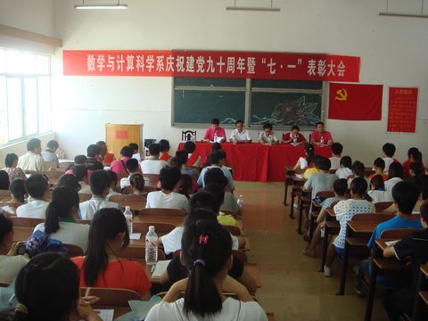 6 月24日下午3时,数学与计算科学系在数学楼505教室隆重举行庆祝建党90周年暨“七一”表彰大会。全体系领导、教职工党员、学生党员、入党积极分子代表等共160多人出席会议。大会由系主任罗李平同志主持。