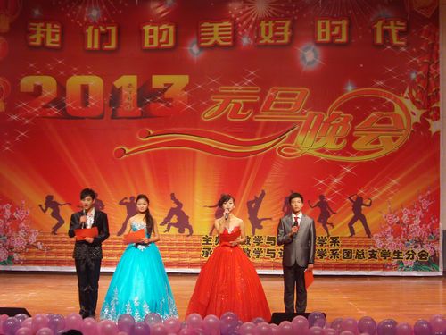 今夜,我们欢聚一堂,尽情酣唱,来年,我系师生将努力拼搏,再创辉煌。