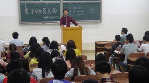 动员会首先由系副主任李龙简单介绍本次动员大会的目的和议程。并且他对2010级学生实习工作作了具体详细的安排。他指出:本次教育实习是按照学院的要求进行的,他还强调实习生到了实习单位要遵守学校的各项规章制度,处处以 “为人师表”来要求自已。他还介绍了负责本次带队实习的指导老师有唐祥德、肖娟和李元旦。接着,系党总支书记邹梅山对本次实习工作作动员,邹书记要求实习生在实习期间做到八个字即:重视、守纪、安全和圆满。最后,系副主任杨柳对本次实习工作作了补充说明,他特别强调了实习的安全问题。他特别给出“不要为失败找理由,要为成功找伴侣”的座右铭,给2010级所有参加实习生以极大鼓励!