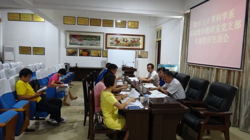 9 月3日下午,数学与计算科学系基础数学教研室党支部在数学楼三楼会议室召开了以“为民务实清廉”为主题,以“反对四风、服务师生”为重点的党的群众路线教育实践活动专题组织生活会。省委派驻高校第四督导组成员、湖南工业大学团委唐秋玲副书记、联系数学与计算科学系的学院领导聂东明副院长、系党总支邹梅山书记、该教研室群众代表王艳群博士、周立君博士应邀出席会议,党支部除陈少林博士因公出国访学外,其他党员均参加会议。会议由基础数学教研室党支部书记李浏兰同志主持。