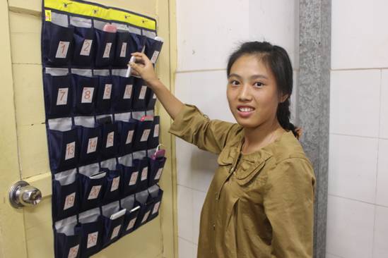 1027晚自习时间,数学与计算科学系所有大一大二教室内装饰一新,班干部们兴致勃勃地在教室墙壁上挂上了新买回来的班级手机集中收纳袋。