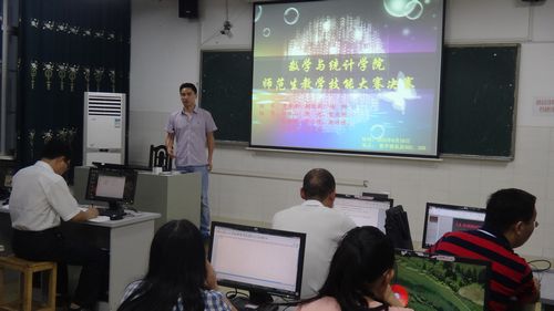 为展现师范生良好精神风貌,提高教学技能,我院于6月10日晚上,在数学楼303和309举行了 师范生教学技能大赛决赛。参加此次比赛的共14名学生,此次大赛的评委由我院院领导、部分教研室主任和教师代表组成。参赛选手都是来自我院2012、2013级的师范专业学生。比赛分二组进行,每组有七位参赛选手。比赛前杨柳副院长和李龙副院长分别讲述了参赛的要求。