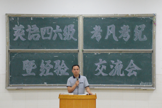 交流会结束之际,周长恩老师就大学英语四六级做考前动员。周老师先从学生个人学业、个人未来就业、升造发展等角度谈及大学英语四六级的重要意义;再从个人学业、个人升学发展、国家法律层面特别强调了诚信参考的重要性及舞弊的危害性。最后,从做好复习准备、掌握复习方法和考试技巧、端正考试心态角度跟大家强调了四六级考试的注意事项。