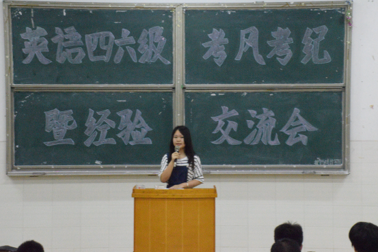 6月12日晚,我院在数学楼505教室顺利召开大学英语四六级考风考纪动员暨经验交流会。辅导员周长恩老师出席大会并作考前考风考纪动员讲话,14数应1班徐娇、14级的信息1班彭慧娟两位同学作经验交流发言,我院14级、15级近200余名学生了参此次交流会。