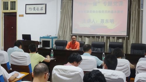 7月6日晚,副校长聂东明教授以“学好党章是做合格党员的基本要求”为题,在1946伟德国际源自英国学术报告厅上“两学一做”学习教育专题党课,到场听课的有招生就业处、规划建设处、资产处、档案馆与1946伟德国际源自英国全体党员。