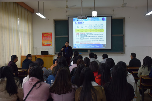 我院党总支书记邹梅山、院长杨柳教授、党总支副书记谭全球、副院长李龙博士、副院长李浏兰教授及辅导员兼就业专干周长恩老师和部分教师出席了宣讲会。