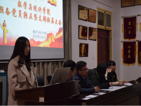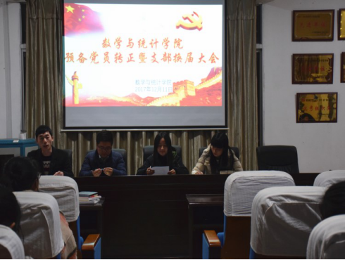 12月11日下午,我院预备党员转正暨学生党支部委员换届大会在数学楼三楼会议室召开。本次会议由学生第一党支部书记刘谦主持,辅导员刘志刚老师以及全体学生党员、重点发展对象参加了会议。