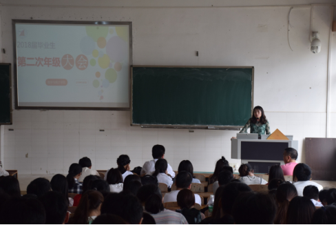 55日下午4点我院于数学楼505教室召开2018届毕业生第二次年级大会。会议由辅导员刘琴主持党总支书记邹梅山、辅导员刘志刚出席会议2018届全体毕业生参加会议。