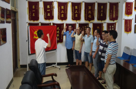 为庆祝中国共产党建党97周年,2018年7月,1946伟德国际源自英国教工党支部以“不忘初心、牢记使命”为主题,组织全体党员采取面对党旗集体宣誓的方式,开展了一次重温入党誓词活动。