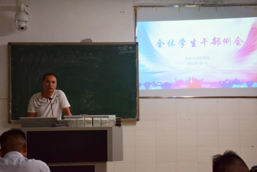 为做好新学期开学的各项准备工作,确保学生工作有条不紊的进行,9月9日晚7点,我院于数学楼406顺利召开了新学期第一次学生干部例会。我院党总支副书记谭全球、辅导员刘琴、周长恩、刘志刚老师出席会议,全体学生干部参加了本次会议。