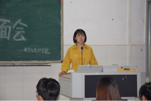 会议伊始,主持人贺文学姐代表数统学院对2018级新生的到来表示热烈欢迎。指出加入学生会是宝贵的经历,收获颇多,并对新生们给予勉励与支持。随后,由各部门部长为代表对各自部门进行介绍。大家利用生动的语言、精彩的PPT、视频等多种形式展示了各部门的特点,将会议一次次的推上高潮。主要从成员构成、工作职能、特色活动和招新要求等方面做了详细介绍。接着,由各位新生自由提问,各部门部长上台为他们一一耐心解答,现场气氛十分热烈。最后,各部门前往宿舍对新生心中的疑问作出解答。