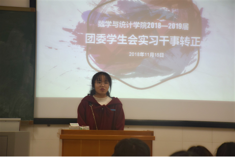 11月15日晚7点,我院2018—2019届团委学生会实习干事转正大会于数学楼521、522教室顺利举行。团委学生会各部门部长、副部长以及全体实习干事出席此次大会。