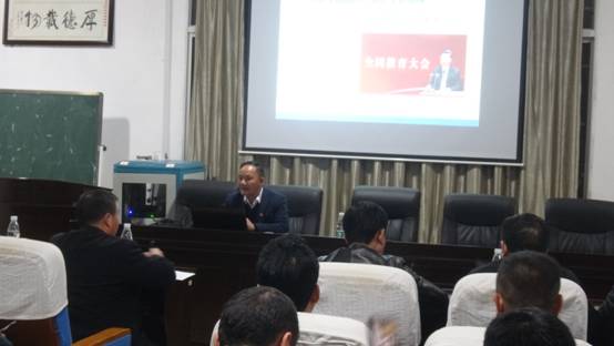 (学校副校长聂东明正在给分管、联系部门党员正在上党课)