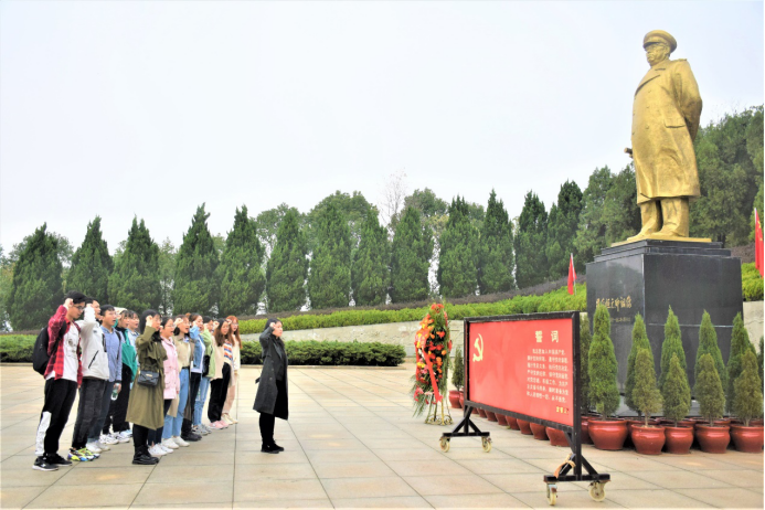 全体党员怀着无比崇敬的心情参观了其中的罗荣桓故居、罗荣桓生平业绩陈列馆以及罗荣桓元帅铜像纪念广场等景点,仔细观看了一幅幅珍贵的照片、一件件实物、雕塑以及历史资料。参观过程中,杨家骏书记不时向学生党员们讲述罗荣桓元帅救国救民、参加长征、艰苦抗战、献身社会主义建设等一生光辉业绩,让他们更真切地感受到革命志士救国救民、上下求索的爱国精神,点燃学生党员们的信念之火。活动最后,全体学生党员带着满腔敬意在罗荣桓元帅铜像纪念广场上整齐列队,面对鲜红的党旗,学生第二党支部书记刘琴同志带领大家重温了入党誓词,誓言字字铿锵有力,句句掷地有声,表达了忠诚于党、不忘初心、永葆共产党员本色的炽热情怀。