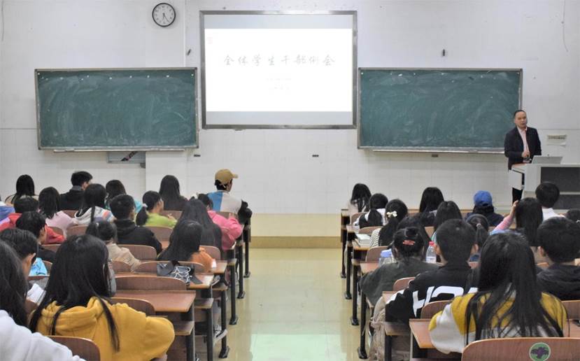 1012日晚620,我院于理科楼(1507教室召开了全体学生干部例会。我院辅导员周长恩老师、贺妮老师出席本次会议。我院全体学生干部参与了本次会议。