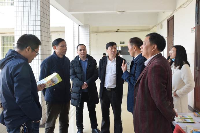 (我院党总支书记杨家骏、院长杨柳以及其他老师与企业单位交谈)