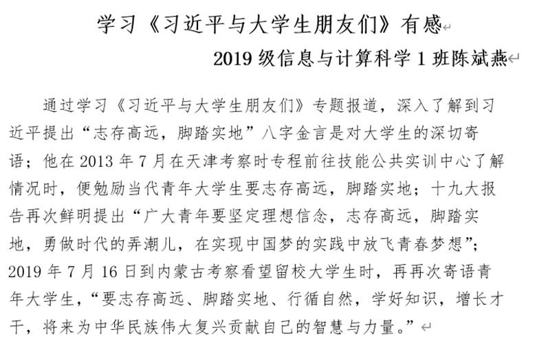 为丰富同学们的校园生活,在疫情防控的总体要求下,我院于329日至41日积极组织开展正能量、小规模、有意义的《习近平与大学生朋友们》读书分享会主题团日活动。活动过程中,我院各班班团带领同学们深度研读《习近平与大学生朋友们》一书,认真钻研了习近平总书记对大学生朋友们提出的新要求和新希望。随后,各班分批次开展了《习近平与大学生朋友们》系列专题读书分享会。会上,同学们畅所欲言,分享自己的心得感悟,表明自己的态度立场,纷纷表示感受到习近平总书记对青年一代的关心与期望,更加明确了自己未来的方向。