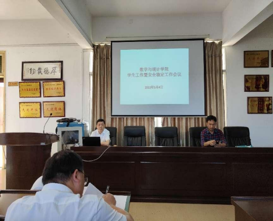 54日下午4点20,我院在理科1楼三楼会议室召开学生工作暨安全稳定工作会议。学院领导班子成员及全体教职员工参加了会议。学院党总支书记杨家骏主持会议并讲话。