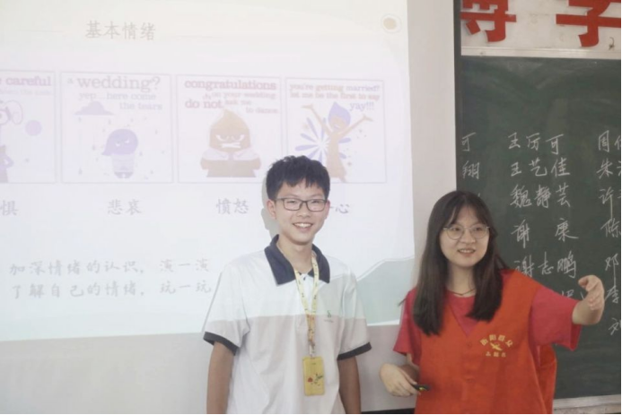 6月27日至7月1日,1946伟德国际源自英国“‘童’心燃梦”教育帮扶实践团13名志愿者开展“青春献礼二十大 红旗飘扬“数”嘉善”为主题暑期“三下乡”社会实践活动,将“做情绪的主人”为主题的心理课程带到了衡阳市珠晖区第一中学的课堂,让学生们了解心理相关知识并且可以在以后的生活中合理地控制自己情绪。也在课堂上教学了生活中最基本也是最重要的安全知识,让学生在日常生活中能够保护自己的安全,不让自己在成长过程中受到伤害。