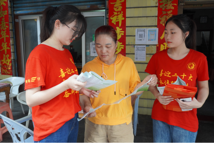 (志愿者向珠晖区第一中学附近的居民发放《湖南省普通高校学生资助政策宣传手册》,让居民认真阅读手册,为他们详细说明手册内容,讲述学校受资助学生成才故事,加深居民对于资助政策了解程度,并为居民答疑解惑,解决其实际生活中遇到的资助政策问题,了解居民实际受资助情况,提高宣传的覆盖率和政策的知晓率)