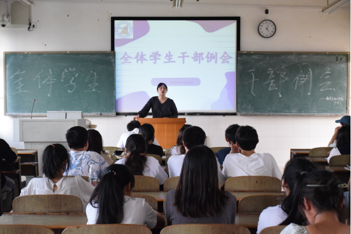 会上,谢炎伶老师对全体学生干部提出三点期望与要求,一、提高政治站位,争做学生榜样;二、加强自身建设,提升工作能力;三、创新工作理念,树立品牌意识。接着,曾超老师为同学们作出新学期的工作指示。曾老师提出,作为学生骨干,要有一双善于发现的眼睛,及时发现并向老师反映身边同学的异象。此外,他强调了封校期间所有学生非必要不离校、不私自外出等疫情防控要求。随后,贺妮老师进行工作部署,使学院各部门分工更明确。她提出学生干部在做事过程中应抱着负责认真的态度,有创意、敢创新,为同学们、学院做贡献。并且,贺老师期望每位学生干部起到引导新生的作用,热情展开迎新活动的同时,调动全体学生的积极性。紧接着,风纪部部长任肖剑同学为大家介绍学生干部考核办法,风纪部将定期对各部门进行考核,对学院各部门工作按相关奖惩制度,进行监督考核和评定。