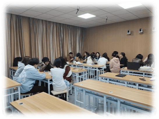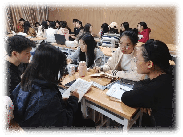 课堂伊始,杨柳教授为学员们展示了某学姐说课比赛的授课视频,本硕学生都非常认真细致地进行观看和学习,并记录下了其中的亮点与稍微不足之处。观看视频结束后,各学员分别以小组为单位进行了活跃的讨论,各有序地讲述述自己的感受与评价,课堂气氛很融洽,小组凝聚力很强!