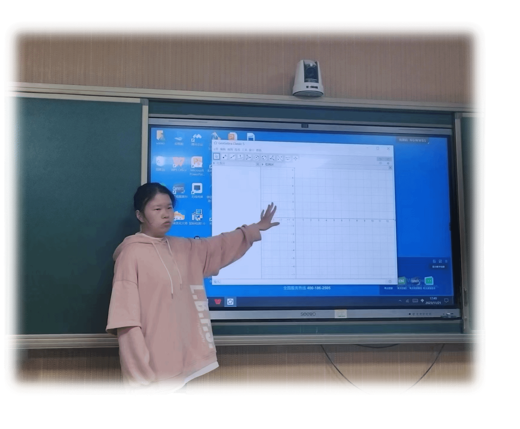 GeoGebra 是一款动态几何软件。其绘图的基本元素包括点,直线,线段,多边形,向量,圆锥曲线和函数。这些绘图元素均可在创建后直接在屏幕或者使用命令动态改变。 GeoGebra 可以完成大量初高等数学中的绘图工作。比如 GeoGebra 可以直接绘制圆锥曲线、对函数求导数、积分、对多项式函数求极值和拐点等,这些极大的方便了教师们制作教学材料。本次课同学们分享了GeoGebra是什么以及该怎样去使用,它可以动态呈现,协助学生观察分析及归纳;互动教学,激发学生的数学兴趣;自主探究,提升学生数学思维能力,发展学生数学学科核心素养。