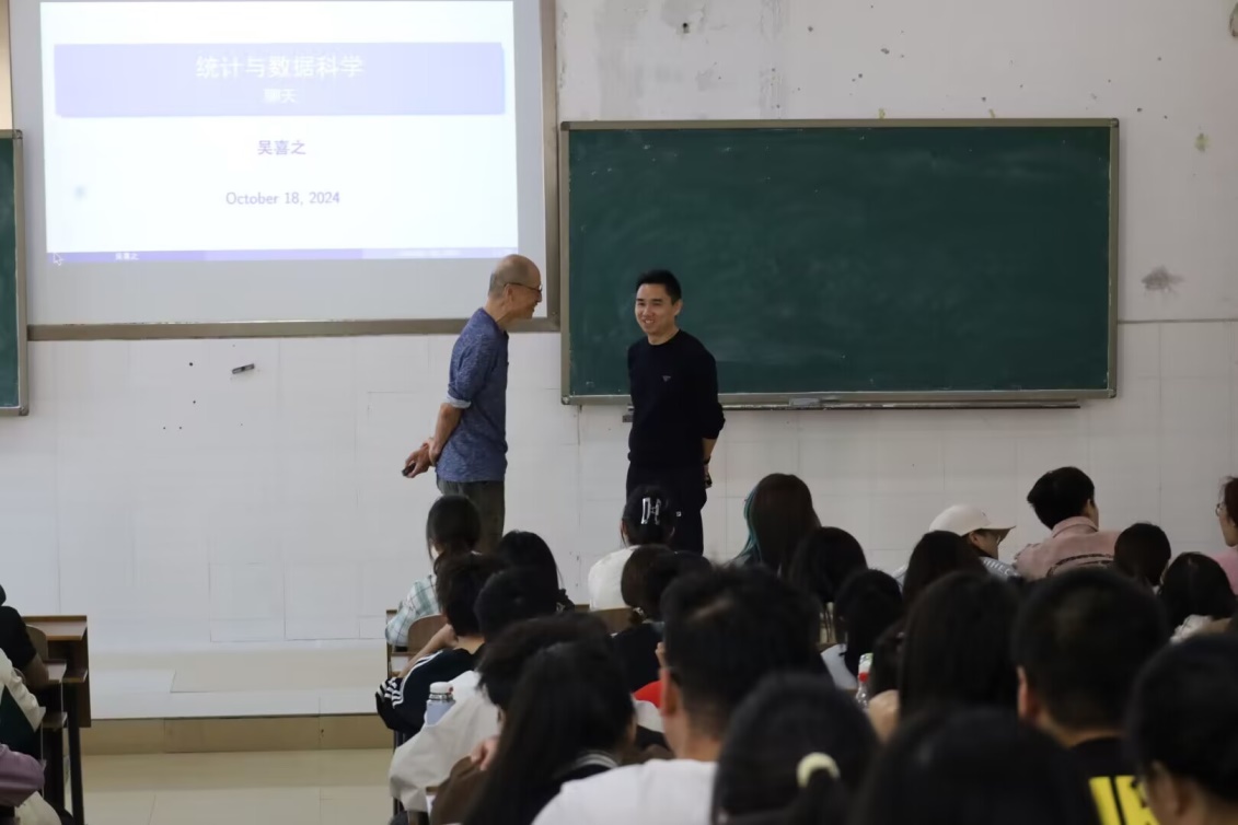 在互动环节,吴喜之教授与在场师生进行了深入的交流与探讨。他耐心细致地回答了师生们关于统计与数据科学领域的研究方法、实践应用以及未来发展方向等方面的疑问,并分享了自己的独到见解和宝贵经验。