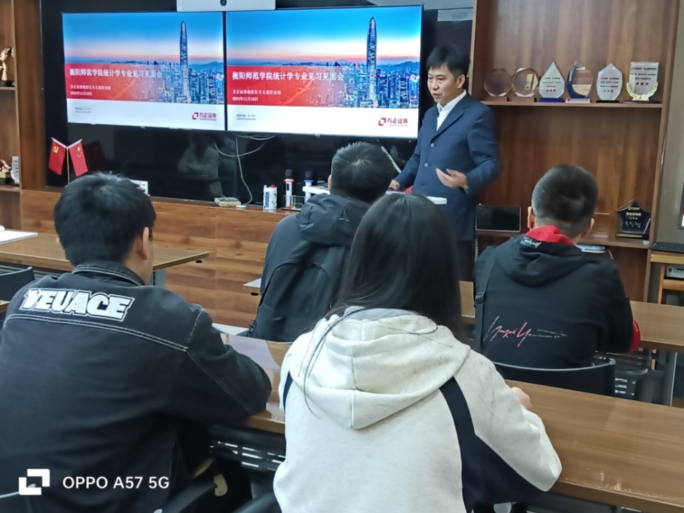 为提升学生就业竞争力,加强学生专业实践能力,2024年11月18日伟德BV19462022级统计学专业学生在方正证券股份有限公司衡阳长丰大道证券营业部召开统计学专业见习见面会。