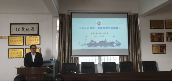 11月27日上午,我院组织召开了专业认证理念下的课程教学大纲修订研讨会。会议由副院长阳志锋主持,数学系全体教师参会。