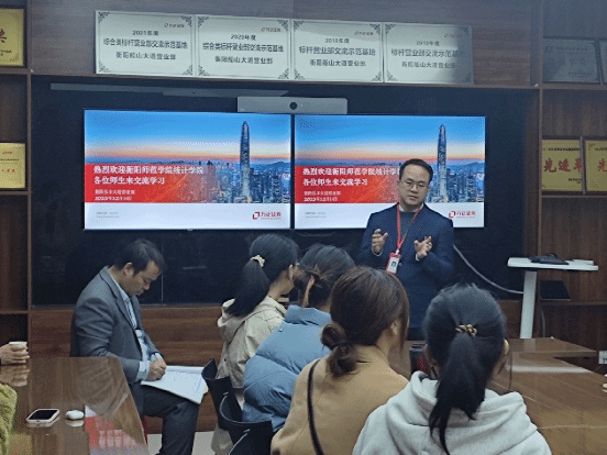 2023年12月14日,为强化我统计学专业的实践教学,我院21级统计学专业在方正证券和衡阳雁城区块链研究院进行专业见习。14日上午,由副院长李浏兰教授和统计学专业负责人曹灿博士带领2021级统计学1班全体同学前往方正证券衡阳长丰大道证券营业部进行专业见习。下午,我院特邀衡阳雁城区块链研究院高级研究员周青青和湖南良才联合会计师事务所(普通合伙)主任会计师欧阳丽娟(注册会计师)对我院统计学专业开展《统计学与大数据》的专业讲座。