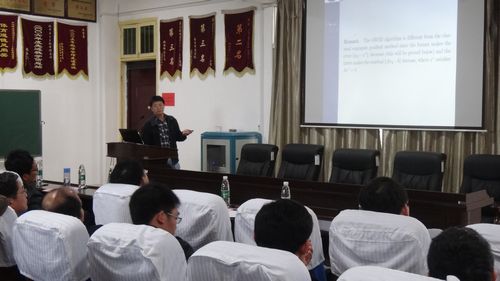 开幕式后是研讨会学术报告,共进行了5场学术报告:中科院数学与系统科学研究院孙聪博士作了题为“Multi-stream algorithm for MIMO AF relay networks”的报告,中科院数学与系统科学研究院姜波博士作了题为“Stiefel流形上优化问题的一个保约束框架及算法”的报告,长沙理工大学周伟军博士作了题为“On Q-linear convergence of two algorithms for equations”的报告。与会教师和专家学者进行了深入的学术交流的探讨。接着,我院龙祖强博士和周志东博士分别作了“模糊控制器的维度灾难与变论域方法”和“一个小图与路和圈的联图的交叉数”的报告。
