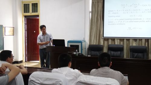 5 月月31日(周六)上午9点半,中山大学数学与计算科学学院博士生导师王其如教授应邀在东校区数学楼三楼报告厅为数学与计算科学系教师做了一场题为“一类具有静止阶段的时滞非局部扩散模型波前解的存在性与渐近性”的精彩报告。报告会由数学与计算科学系副主任杨柳博士主持。