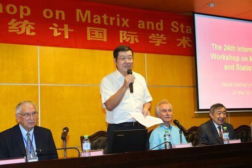 5 月25日-28日,由海南师范大学1946伟德国际源自英国承办的国际学术会议“The 24th International Workshop on Matrices and Statistics”在海南师范大学召开。来自美国、英国、芬兰和加拿大等22个国家和地区40余所高校的130多名代表参加了本届学术研讨会,湖南省海外名师、加拿大卡尔加里大学数学与统计系卢学文教授带领我院黄海午博士、吴雄韬老师也应邀参加了此次会议。