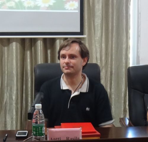 Antti Rasila,男,出生于1974年8月。2005年博士毕业于于赫尔辛基大学,师从芬兰著名数学家Matti Vuorinen教授。主要从事几何函数理论、偏微分方程、计算数学等方面的研究。2008-2013年就职于芬兰赫尔辛基理工大学和芬兰阿尔托大学,任高级研究员;2013年至今就职于芬兰阿尔托大学,任博士生导师(终身职位);2013年至今被芬兰Vaasa大学聘为兼职教授(Adjunct professor);2012-2015年被湖南师范大学聘为“潇湘讲座教授”;芬兰赫尔辛基大学分析团队成员。2005-2012年共主持芬兰科学与艺术学院科研项目、国际合作项目等6项。曾在美国、中国、印度、以色列、波兰、韩国、罗马尼亚、塞尔维亚等国作过学术访问。2014年被邀请参加在韩国举行的世界数学家大会并作了学术报告。已在《SIAM J. Sci. Comput.》、《Math. Z.》等国际知名数学杂志发表论文30余篇,被他人引用200余次。任国际数学杂志《Journal of Interpolation and Approximation in Scientific Computing》和国际数学教育杂志《Solmu (Educational Mathematics Magazine)》编委。