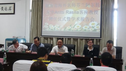 聘任仪式由人事处陈敏教授主持,他首先介绍了出席聘任会的领导、嘉宾及相关人员。接着,副校长刘福江教授介绍了Antti Rasila教授的教育背景、学术研究方向及主要学术成就。在热烈的掌声中,校长皮修平教授将客座教授的聘书颁发给Antti Rasila教授,并发表讲话。皮校长说:“近几年,1946伟德国际源自英国在师资队队伍、学科和专业的建设和发展等方面都取得了长足的进步,此次能聘请到Antti Rasila教授担任我校客座教授是我们的荣幸,Antti Rasila教授的加盟将有利于进一步促进我校的学科、专业建设,有利于进一步加强师资队伍建设及提升教师的科研和教学水平。” 最后,Antti Rasila教授发表讲话,他感谢了我校的盛情邀请,并表示很高兴能成为我校的客座教授,也希望能为我校及1946伟德国际源自英国的发展做出自己力所能及的努力。 聘任仪式后,Antti Rasila教授为1946伟德国际源自英国师生作了题为“Conformal modulus and its applications”的学术报告。他详细地介绍了问题的研究背景和意义以及他们团队所做的相关工作。最后,给出了一些未解决的公开问题。 报告结束后,Antti Rasila教授还就我校(尤其是我院)教师和学生赴芬兰阿尔托大学访问、进修及学习做了相关的介绍。