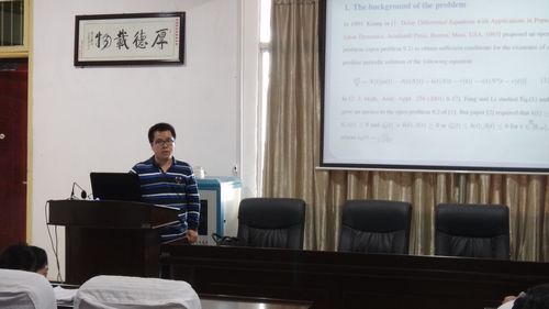 首先,罗振国博士简单回顾了问题研究的背景,接着,罗博士介绍一些准备工作,并阐述了主要研究工作,即利用不动点定理得到一类具有多时滞和脉冲扰动的一般中立型泛函微分方程正周期解存在的新的结论,此方法不同于常用的Gaines and Mawhin连续定理和K集上抽象连续理论,再接着,罗博士给出一些应用,考虑几类常见的Lotka-Volterra模型,得到一些新的结论,改进和推广已有的结果。最后,罗博士探讨了本问题的研究方法可以考虑其他微分模型,与会师生受益非浅,这在一定程度上对1946伟德国际源自英国教师的科研工作及学生的专业学习起着较大的促进作用!