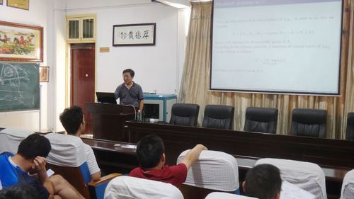 7月5日下午,我院邀请了南开大学博士生导师马世旺教授做了题为“Noncompact Variational Problems and high energy solutions of Kirchhoff problem in R^3.”的学术报告。报告由我院杨柳院长主持。省级重点学科带头人、科技处处长罗李平教授参加报告会并就我院学科建设与马世旺教授进行深入交流。我院部分教师参加了报告会。 马教授主要讲述了非紧的变分问题的基本方法及在一类非局部问题的研究中的应用。马教授渊博的学科知识、前沿的学术视野以及敬业精神深得大家敬佩。 本次报告将进一步推动我院学科建设。