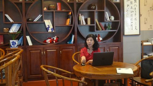 (加拿大纪念大学袁沅教授正在讲学)