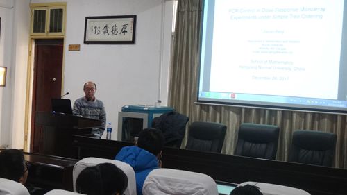 12月26日下午,加拿大阿卡迪亚大学数学与统计系彭家南教授应邀来我院,在数学楼三楼学术报告厅作了一场题为“FCR Control in Dose-Response Microarray Experiments under Simple Tree Ordering”的学术报告。报告会由我院院长杨柳教授主持,我院部分教师和统计学专业学生聆听了此次报告。