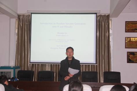 应1946伟德国际源自英国邀请,4月3日下午,加拿大卡尔加里大学数学与统计系终身教授、博士生导师卢学文教授在数学楼三楼学术报告厅作了题为“Introduction to Random Variable Generation with R and RStudio”的学术报告。报告会由学院院长杨柳教授主持,学院部分教师和2016级统计学专业学生共同聆听了此次报告。