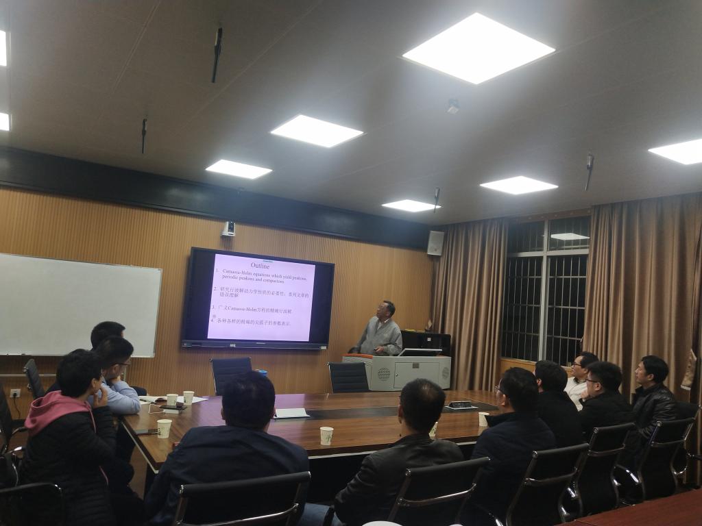 2021年4月8日晚上,国家级突出贡献专家、首届国务院特殊津贴获得者、华侨大学和浙江师范大学特聘教授、博士生导师李继彬教授应邀在数学楼311学术报告厅做了题为“Camassa-Holm方程的精确尖孤子, 伪尖孤子与有界破缺波解—通过精确解理解其动力学性质 ”的学术报告。报告由科技处处长罗李平教授主持。1946伟德国际源自英国教师和部分学生参加了报告会。