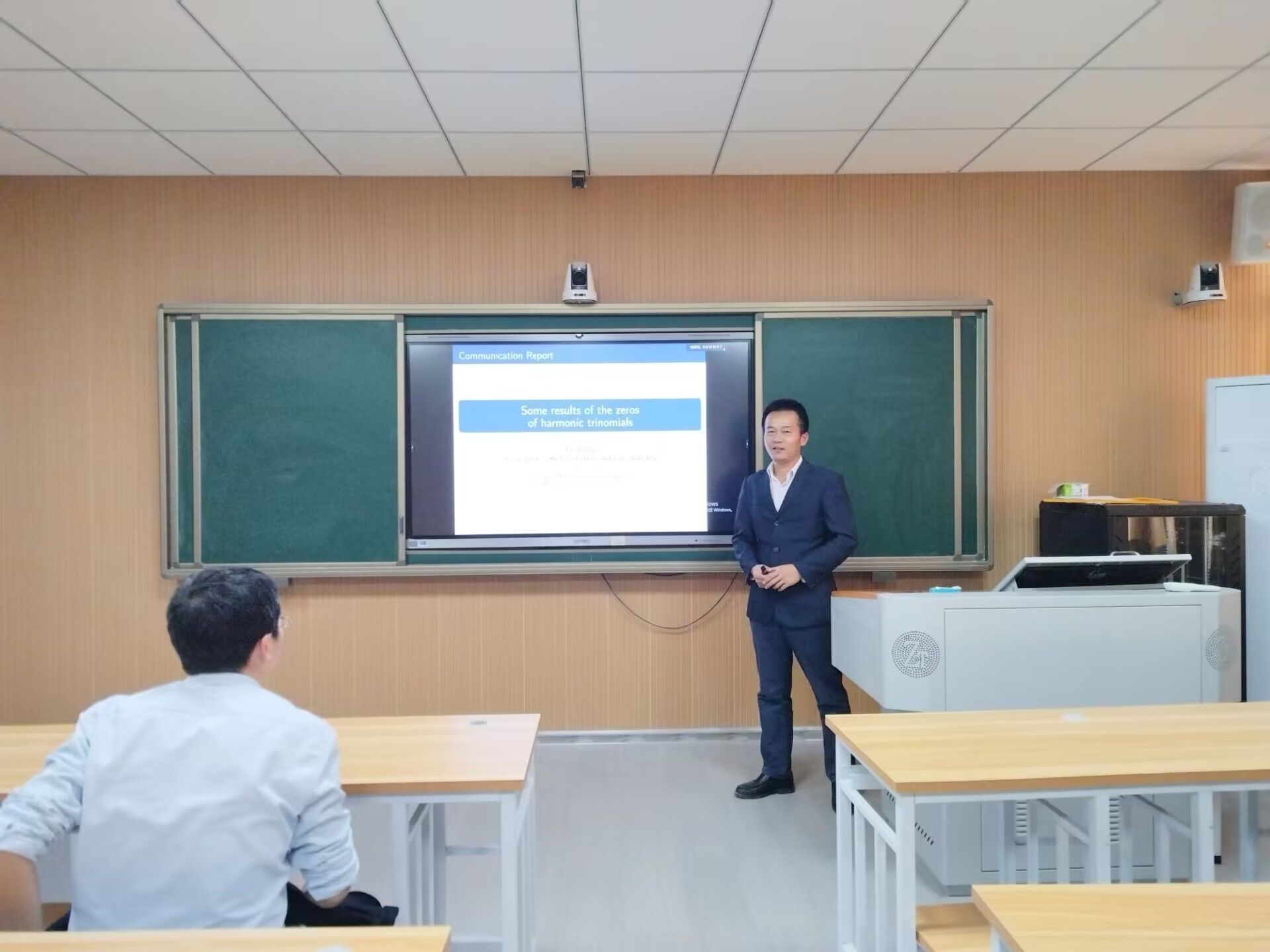 》的报告。刘老师指出不同于多项式零点问题,调和多项式的零点问题非常复杂。针对特殊类的调和三项式,及一类只有三项的调和多项式,本报告将给出他们零点的数目与位置分布方面的一些结果。